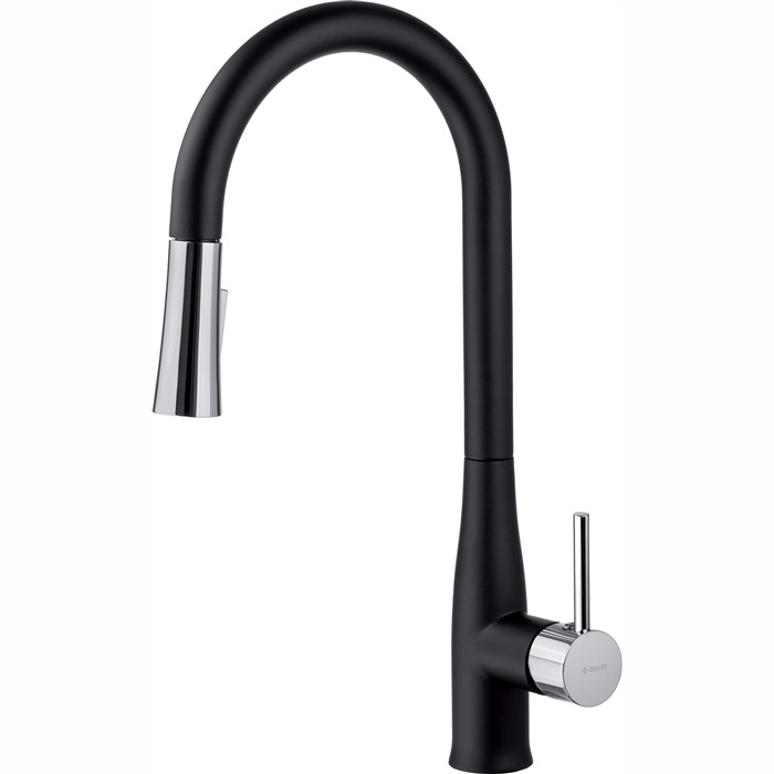 Корпус смесителя изготовлен из латуни высочайшего качества. Смеситель оборудован струйным аэратором. Смеситель с функциональным выдвижным изливом. 2-х функциональный ручной душ (дождь и струя воздуха). Соединительные шланги длиной 45 см в комплекте. Класс потока Z (4-9 л/мин) позволяет снизить расход воды. Смеситель оборудован обратными клапанами, чтобы смешанная вода не стекала обратно в установку. Тип: смеситель Назначение: для кухонной мойки Картридж: керамический Диаметр картриджа: 35 мм Вид смесителя: однорычажный Тип излива: выдвижной излив, поворотный излив Длина соединительных шлангов: 450 мм Монтажная резьба: 3/8 \" Соединительная резьба: M10 Колекция: Lukrecja Высота: 43.9 см Цвет: хром, черный Клас шума: I