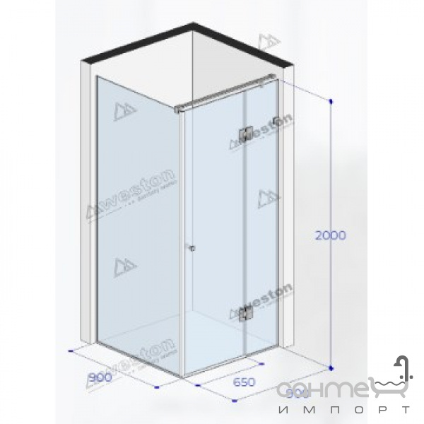 Душевая кабина Weston WK3 900x900x2000 polish/прозрачное стекло, ручка-полотенцедержатель