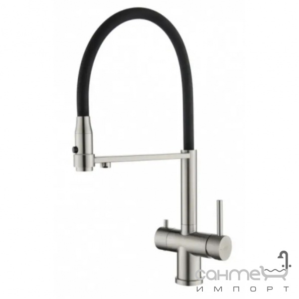 Смеситель для кухни с гибким изливом и изливом для фильтрованной воды Zerix KIT-021 нерж. сталь/серый