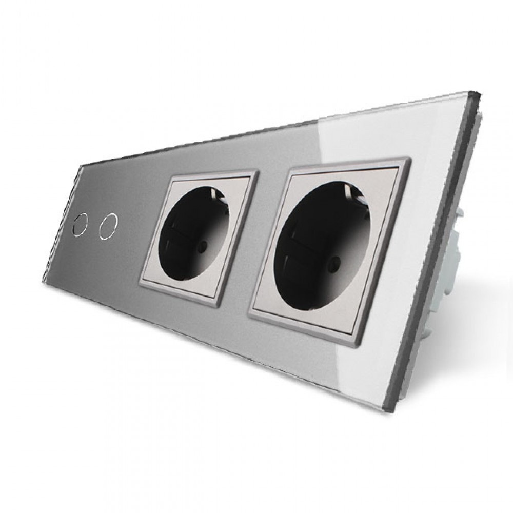 Сенсорный выключатель Livolo 2 канала серый стекло (VL-C702-15)
