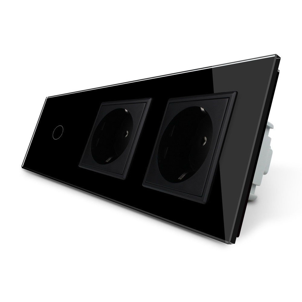 Сенсорный проходной маршевый перекрестный выключатель Livolo черный стекло (VL-C701S-12)