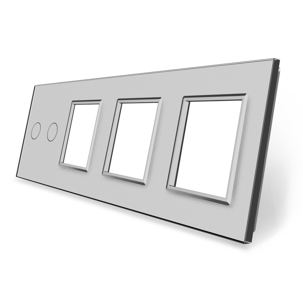 Сенсорная панель выключателя Livolo 2 канала и двух розеток (2-0-0) серый стекло (VL-C7-C2/SR/SR-15)