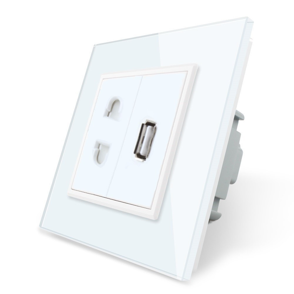 Розетка два USB с блоком питания 2.1А 5V Livolo белый стекло (VL-C792U-11)