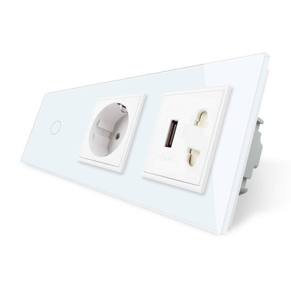 Розетка тройная с заземлением Livolo 16А белый стекло (VL-C7C3EU-11)