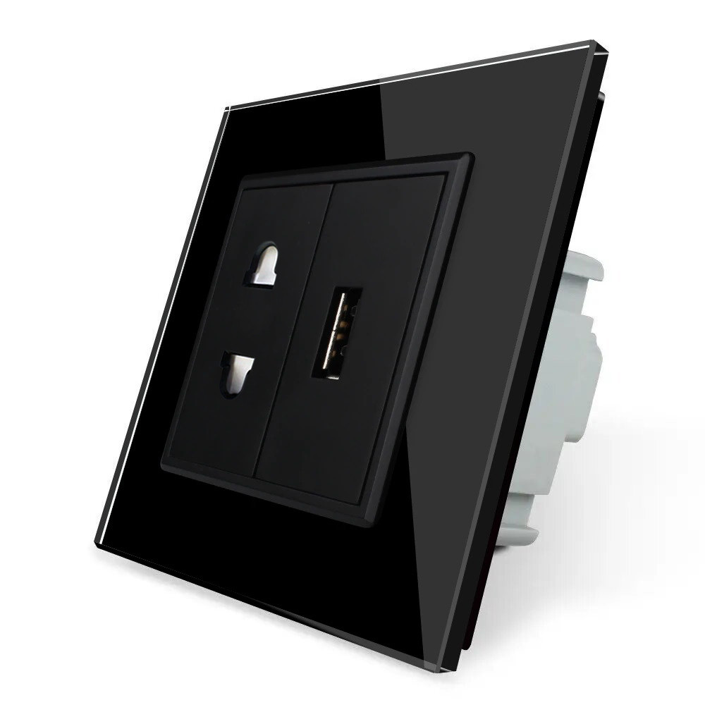Розетка универсальная с USB розеткой черный стекло Livolo (VL-C7C1AUSB-12)