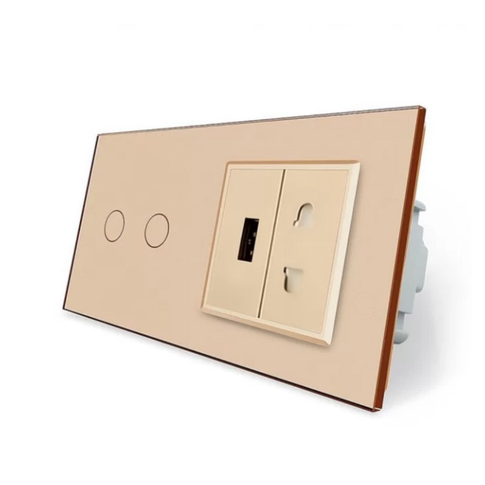 Умный сенсорный проходной выключатель 3 сенсора (1-1-1) золотой стекло Livolo (VL-C703SZ-13)