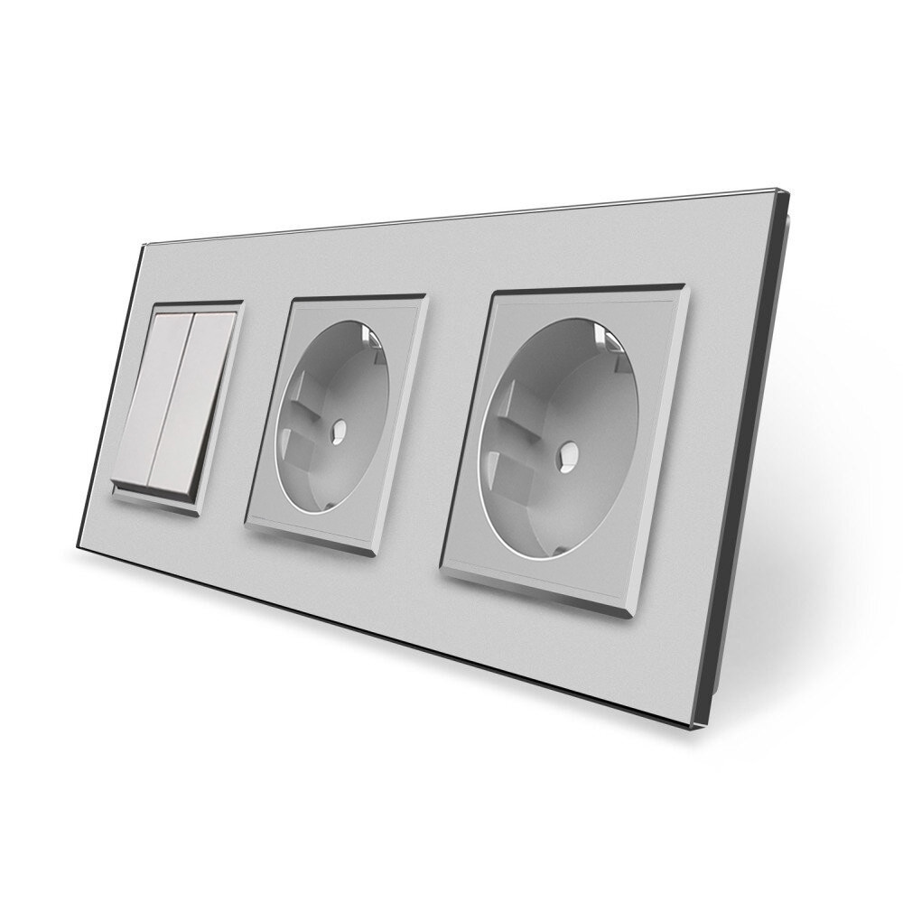 Комплект двухклавишных выключателей серый стекло Livolo (VL-C7K2K2-15)