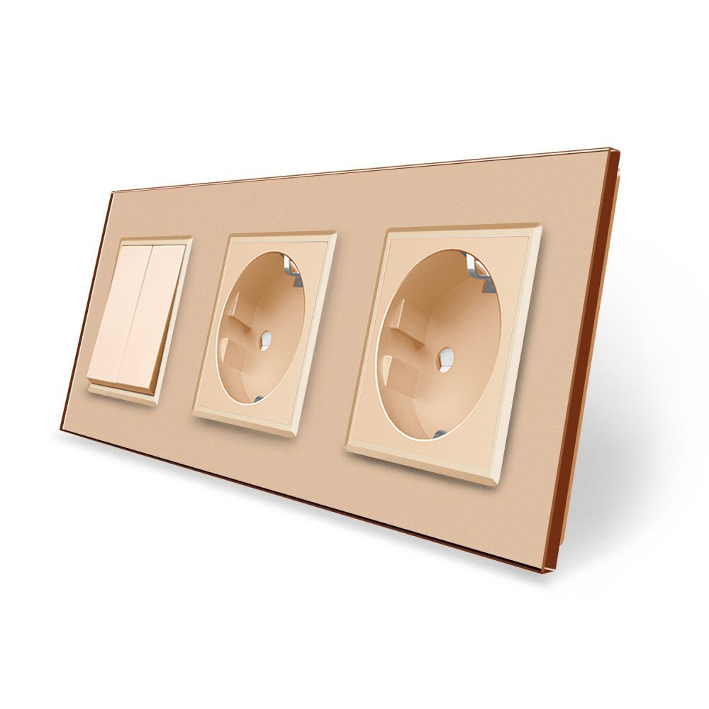 Двухклавишный выключатель с розеткой белый стекло Livolo (VL-C7C1EUK2-11)