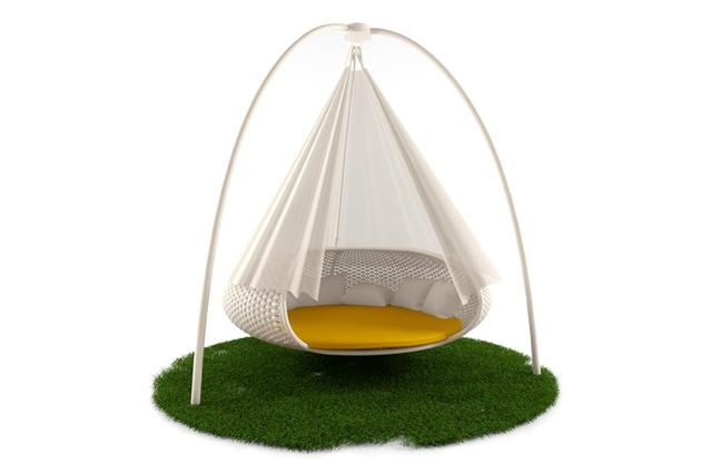 Уличный подвесной диван-качель Нест-Гнездо можно крепить к усиленном потолку или же пририобрести дополнительно стойку-каркас с накидкой от насекомых или защитой от солнца.