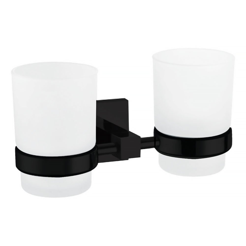 Стакан двойной, круглый, черное матовое покрытие, материал: цинк, нержавеющая сталь, матовое стекло, гарантия 3 года