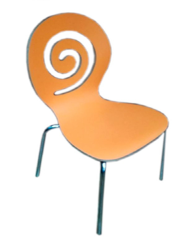 Твердое сидение из моноблока в оранжевом цвете выполнена из гнутоклеенной фанеры с покрытием HPL ламината высокого давления, четыре ножки изготовлены из металла (нержавеющая сталь диаметр трубы 19 мм, толщина металла 1,5 мм) - тонкий и прочно удерживают конструкцию.