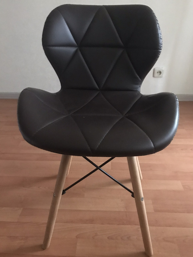 Дизайнерская модель обеденного стула с мягким сидением, применим для столовой комнаты, кухни или гостиной.