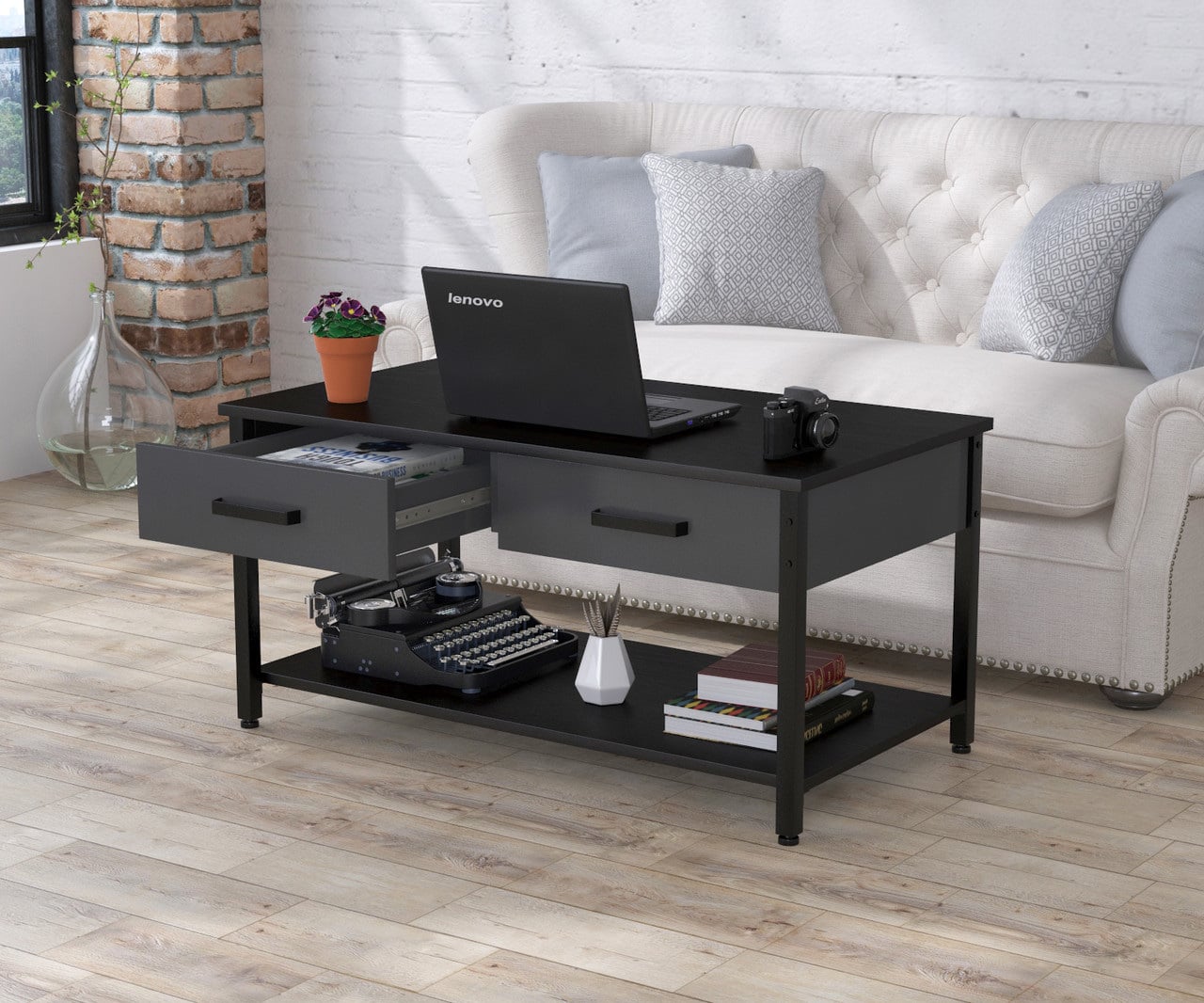 Журнальный столик L-6 Loft-design 920х500х450 мм с ящиками столешница-полочки дсп дуб-борас