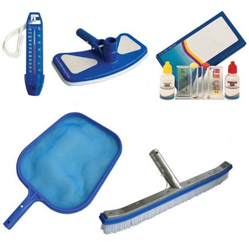 Уборочный комплект для бассейна Kokido Classic K056WBX. Состоит из пяти предметов. В наборе: Шумовка для сбора листьев Металлическая щетка для задней стенки Щетка под пылесос 42 см Капельный тестер для измерения pH и Cl Термометр 17 см