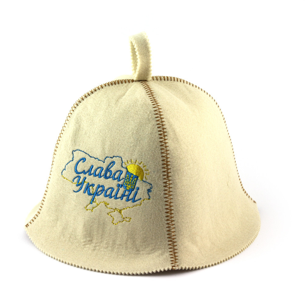 Банная шапка незаменимый аксессуар при посещении бани и сауны. Кроме оригинального внешнего вида или веселого слогана вышитого на ней шапка выполняет очень важную роль - она бережет нашу голову от перегрева. Мы рекомендуем подходить к в выбору шапки для бани и сауны не менее ответственно, чем при выборе другого головного убора.Банная шапка с вышивкой "Слава Украине" изготовлена из искусственного фетра. Цвет фетра белый.Модель имеет сверху петельку, которая позволяет повесить шапку на крючок .Уход за изделием:В стиральной машинке изделия из фетра нужно стирать в режиме для шерсти, можно отжимать в деликатном режиме отжима.Температура воды не должна превышать 40 градусов, особенно если изделия цветные.Сушить нужно изделие в развернутом виде