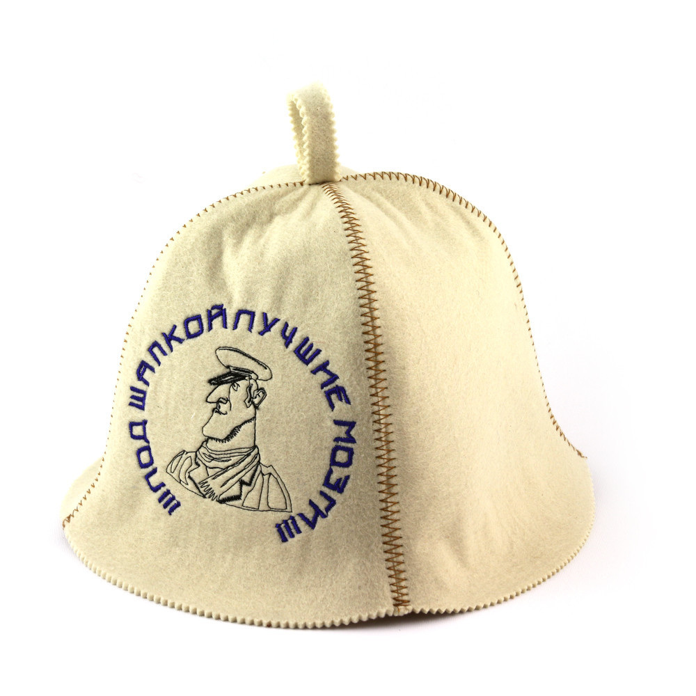 Банна шапка незамінний аксесуар при відвідуванні лазні та сауни. Окрім оригінального зовнішнього вигляду або веселого слогана вишитого на ній шапка виконує дуже важливу роль – вона береже голову від перегріву. Ми рекомендуємо підходити до вибору шапки для лазні і сауни не менш відповідально, ніж при виборі іншого головного убору.Банна шапка з вишивкою " виготовлена із штучного фетру. Колір фетру білий. Модель має зверху петельку, яка дозволяє повісити шапку на гачок. вироби кольорові. Сушити потрібно виріб у розгорнутому вигляді