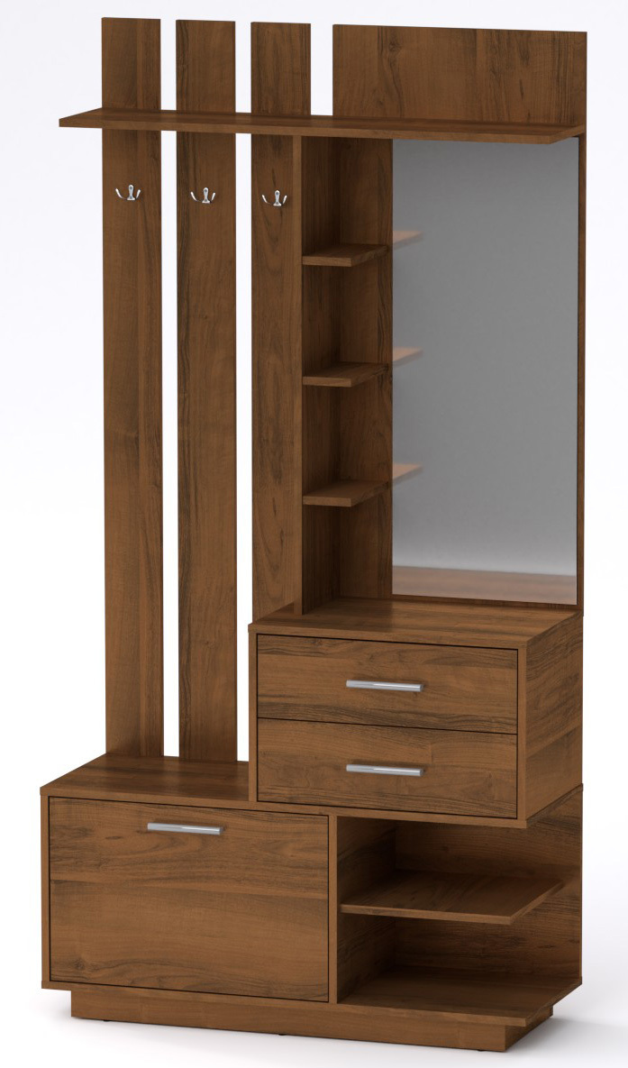 - Материал прихожей – ламинированная ДСП, этот качественный и экономичный материал отлично подходит для мебели в доме.