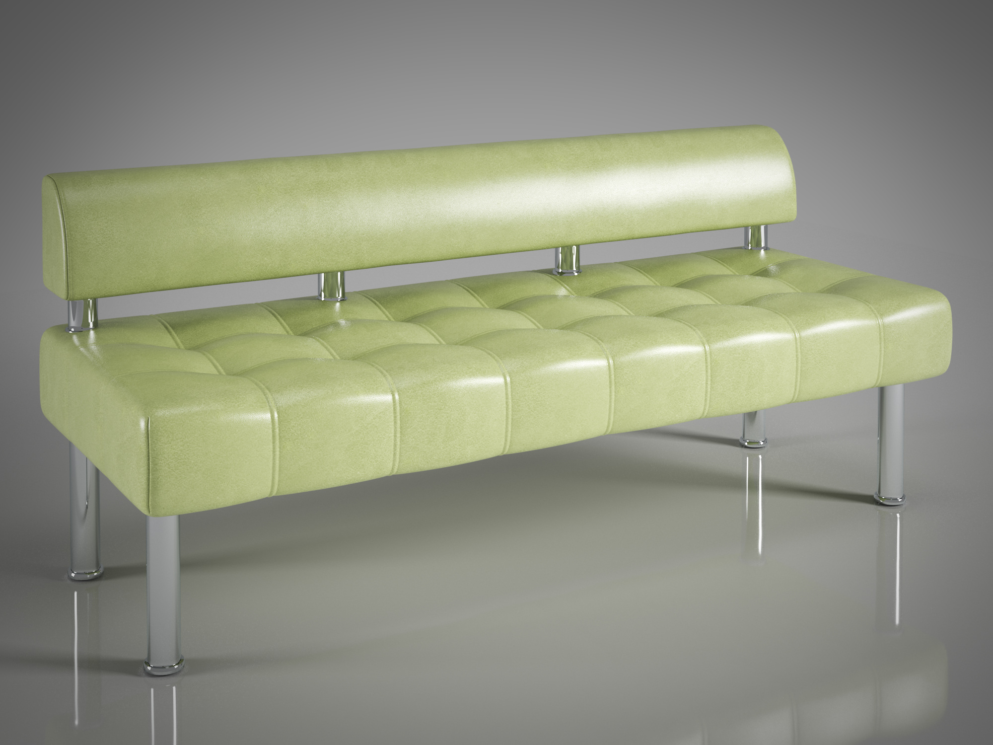 Диван-Офис без подлокотников – самодостаточная модель, лишенная вычурности и броских элементов, благодаря чему прекрасно подойдет и для офисного помещения и для комнаты ожиданий, холла, вестибюля. Массивная основа установлена на невысокие хромированные ножки диаметром 50 мм, которые удачно подчеркивают формы изделия.