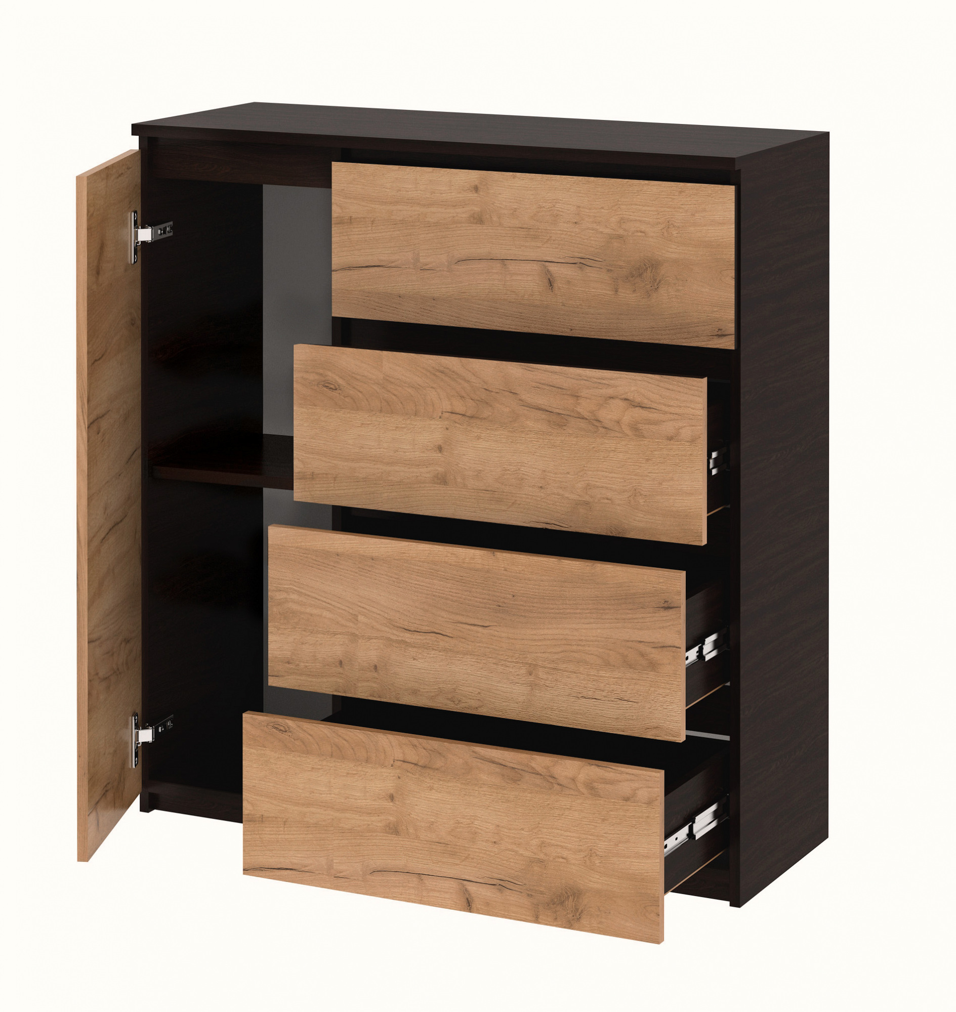 Комод Мастер Форм с тумбой и 4 выдвижными ящиками телескопы Венге + Дуб крафт золотой (100х37,6х95 см)
