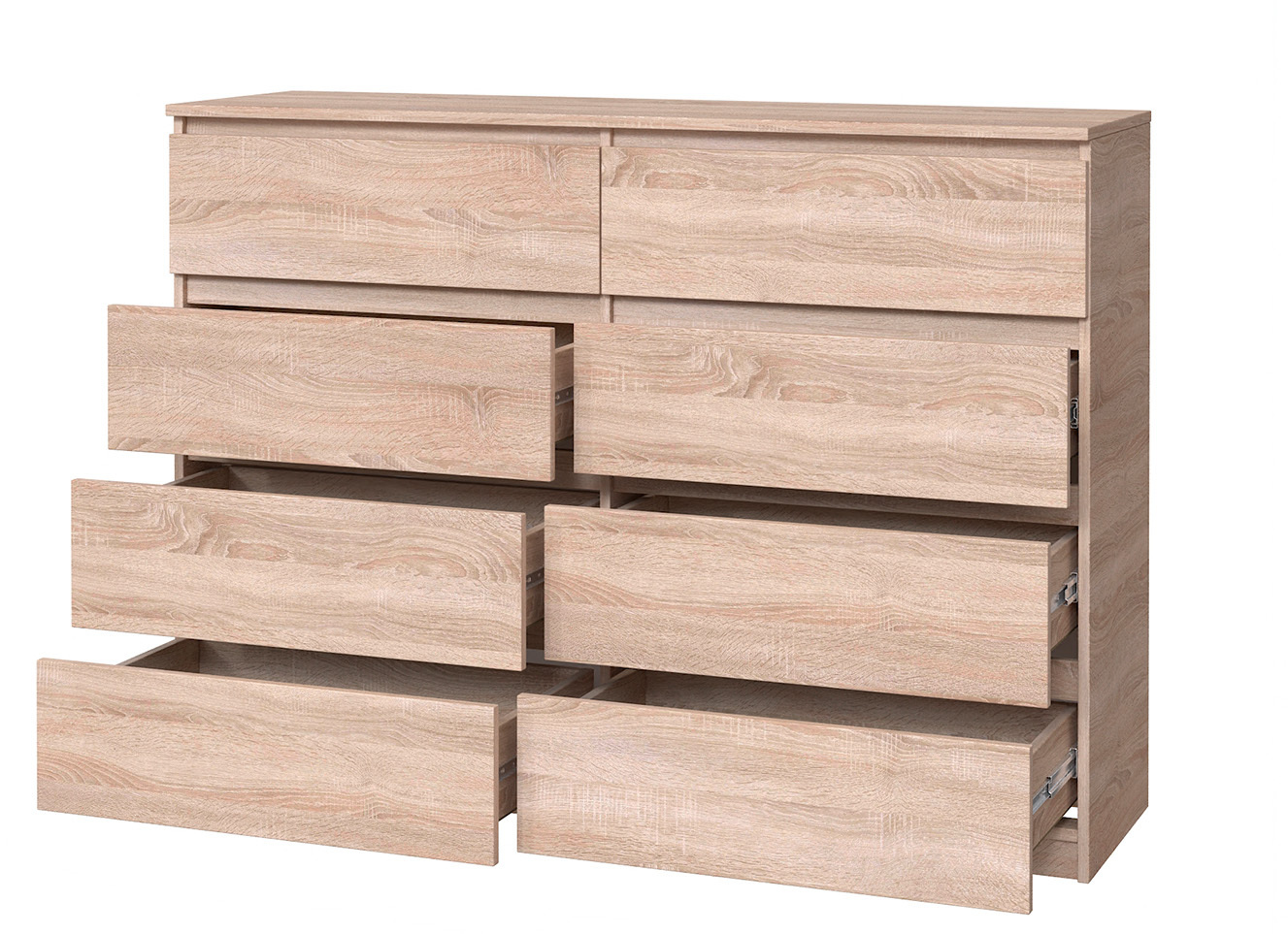 Комод Мастер Форм с 8 выдвижными ящиками телескопы Дуб сонома (130х37,6х95 см)