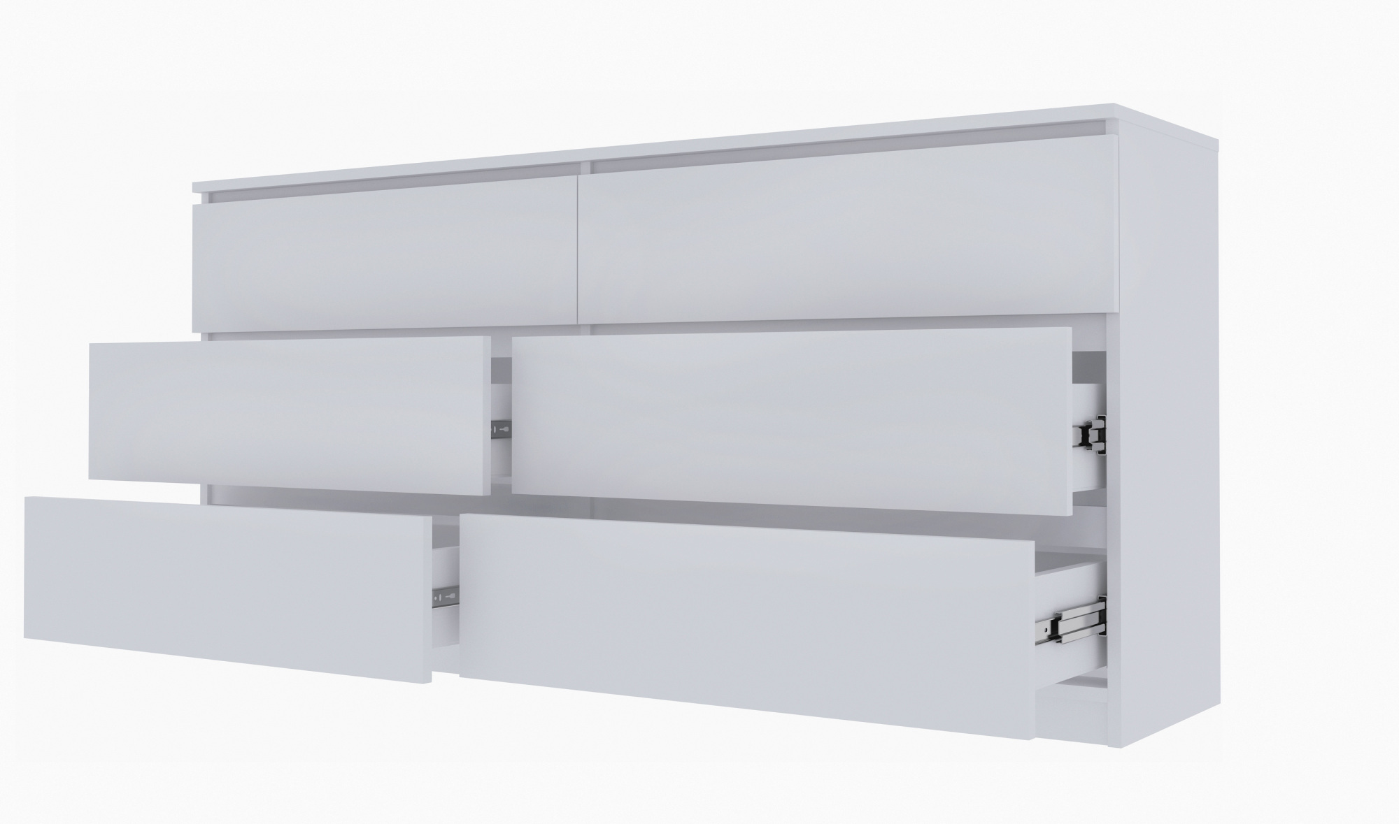 Широкий комод Мастер Форм с 6 выдвижными ящиками телескопы Белый (150х37,6х73 см)