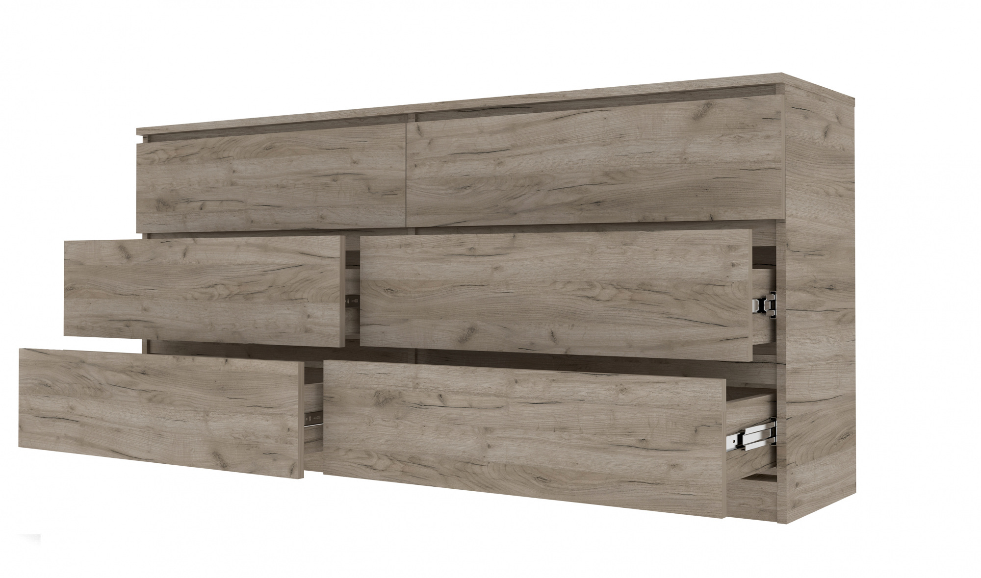 Описание Широкий комод Мастер Форм с 6 выдвижными ящиками телескопы Дуб крафт серый (150х37,6х73 см)