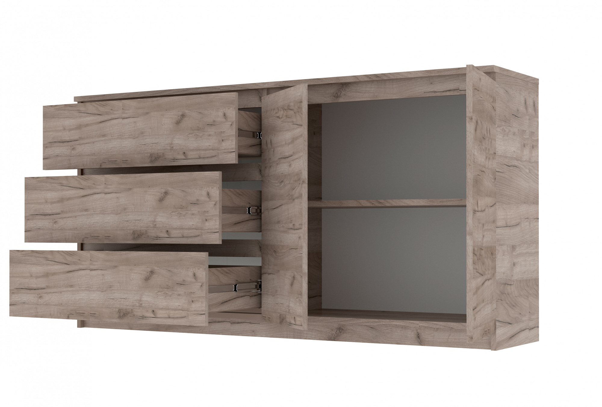 Комод Мастер Форм с 2 дверцами и 3 выдвижными ящиками телескопы Дуб крафт серый (158х37,6х73 см)