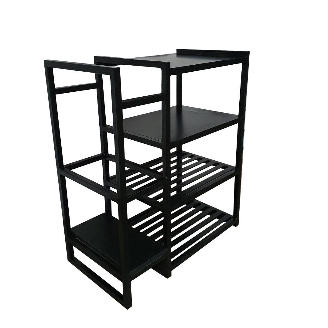 Тумба для обуви GoodsMetall в стиле Лофт металлическая ПО106 Тумба имеет четыре полки для обуви и дополнительно Подставку для зонтов. Каркас: Каркас сделан из металлического профиля 20*20 с толщиной стенки 2 мм. Благодаря металлическому каркасу тумба очень прочная и устойчивая. На ножках каркаса имеются Флисовые подкладки, которые сохраняют пол от царапин и повреждений. Полки: Полки выполнены так же из металлической полосы 25х4. Благодаря такой конструкции они выдерживают достаточно большой вес и прослужат максимально долгое время. Покраска: Для покрытия каркаса мы используем качественную порошковою краску, которая устойчива к царапинам и предотвращает появление коррозии. Благодаря порошковой покраске тумба совершенно НЕ БОИТСЯ ВЛАГИ и прослужит максимально долгое время. Размеры: Высота - 750 мм Ширина — 650 мм Глубина — 350 мм Вес — 12 кг