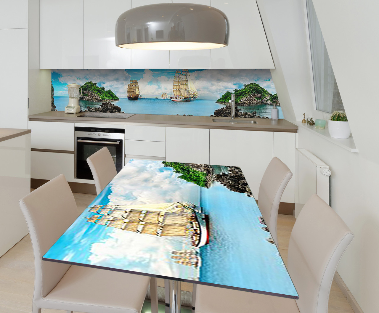Описание Наклейка виниловая на стол Zatarga "Корабли и Скалы" 600х1200 мм
