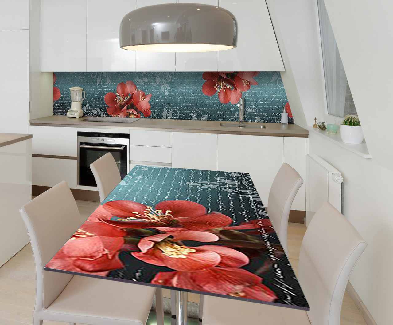 Описание Наклейка виниловая на стол Zatarga "Крупные цветы Орнамент" 650х1200 мм