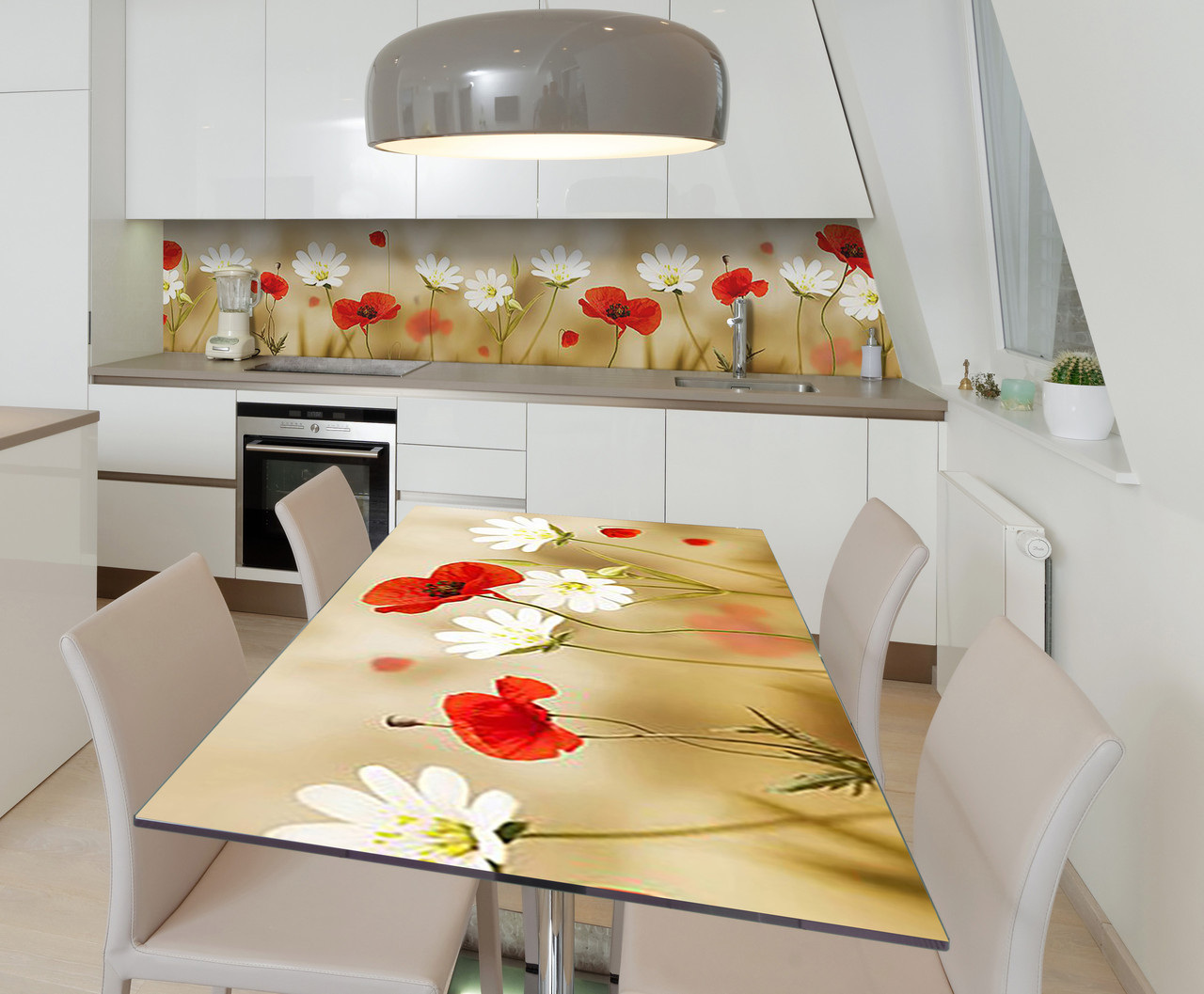Описание Наклейка виниловая на стол Zatarga "Маки и Ромашки" 600х1200 мм