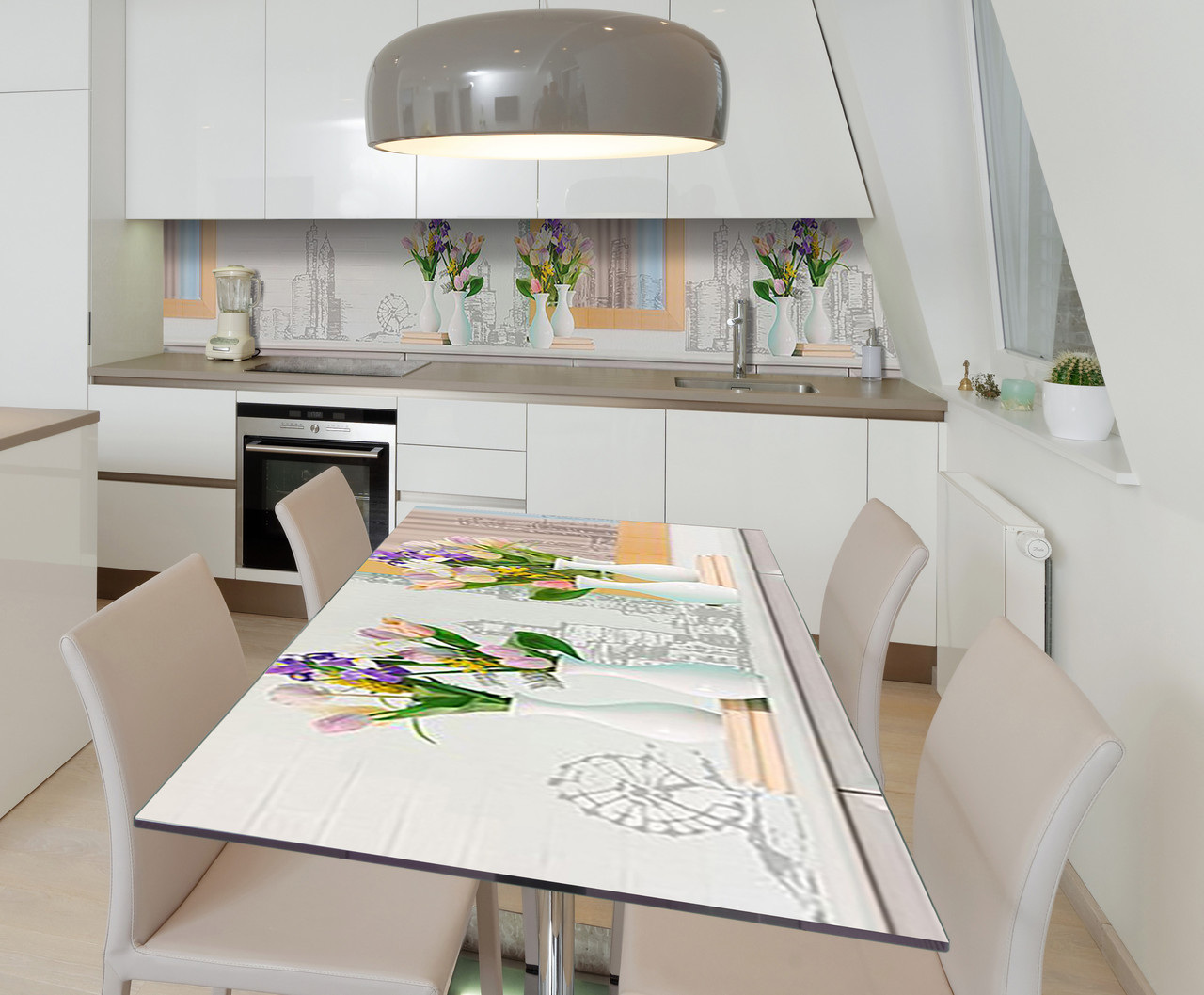 Описание Наклейка виниловая на стол Zatarga "Тюльпаны в вазах" 600х1200 мм