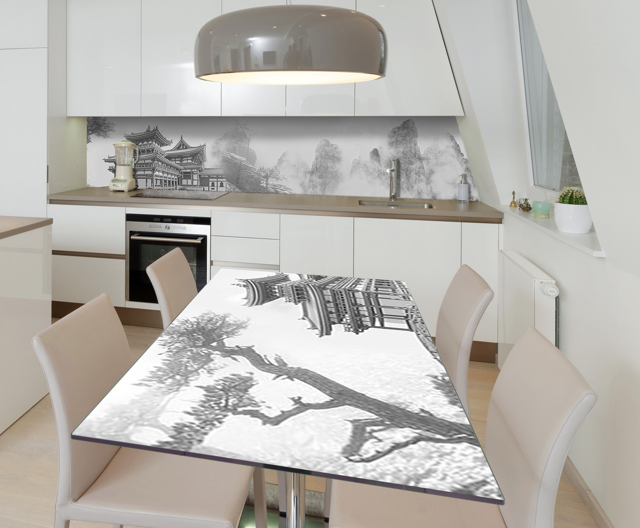 Описание Наклейка виниловая на стол Zatarga "Восточный храм в горах" 600х1200 мм