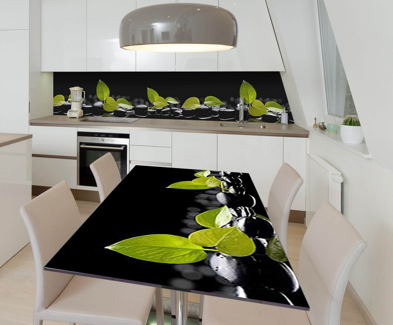 Описание Наклейка виниловая на стол Zatarga "Зеленые листья на камнях" 600х1200 мм