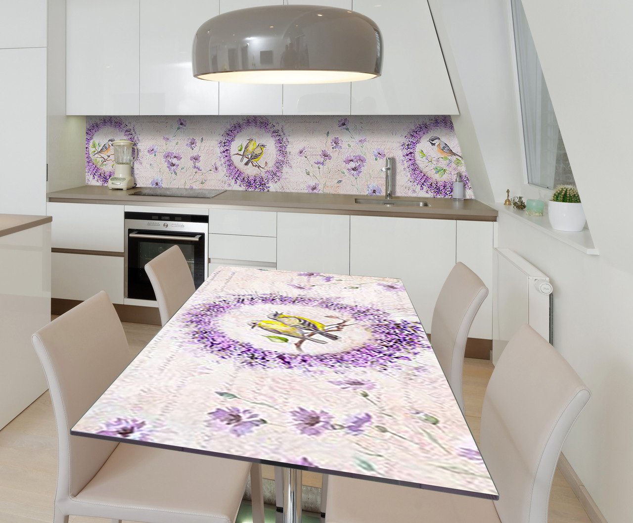 Наклейка виниловая на стол Zatarga "Лаванда и Синицы" 600х1200 мм