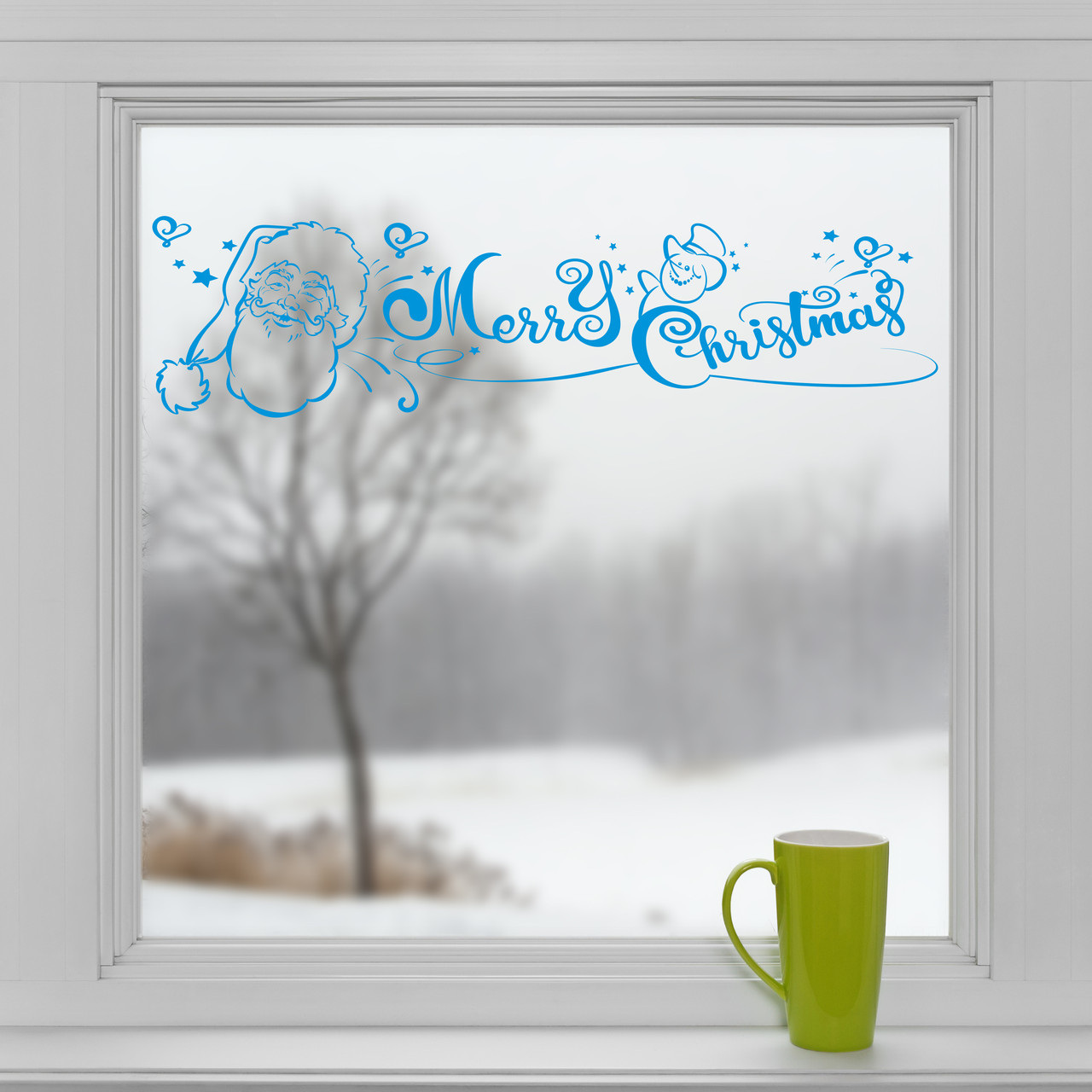 Новогодняя виниловая наклейка Zatarga Merry Christmas! ( голубой ) 1100х280мм