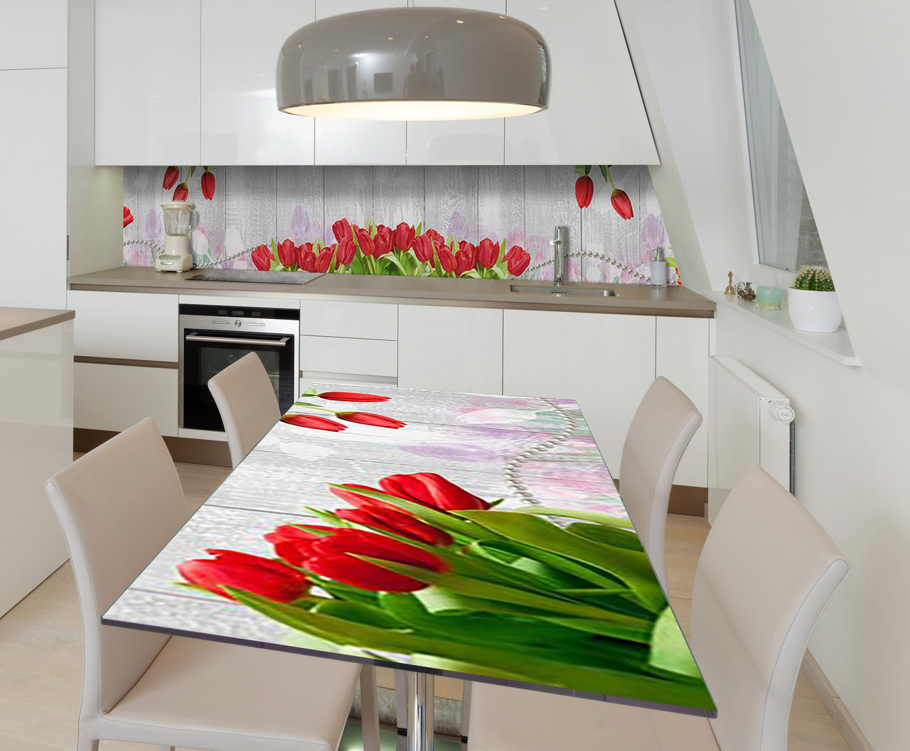 Описание Наклейка виниловая на стол Zatarga "Красные тюльпаны" 600х1200 мм