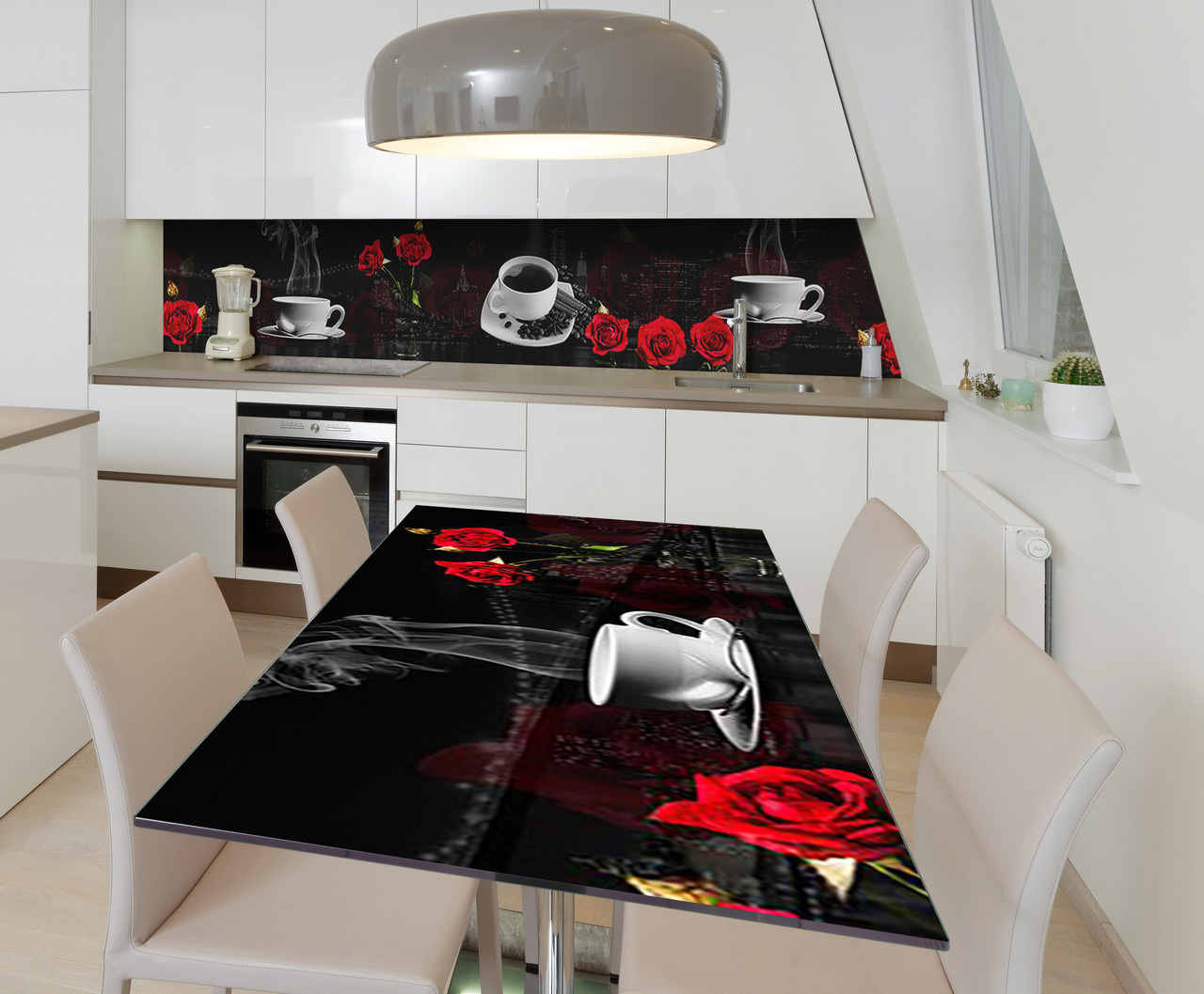 Описание Наклейка виниловая на стол Zatarga "Кофе и Розы" 650х1200 мм