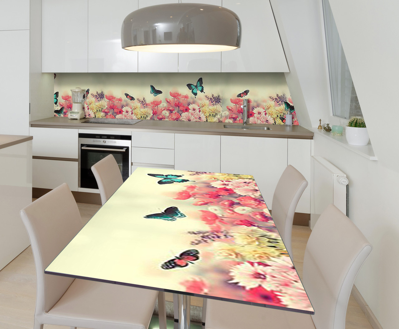 Наклейка виниловая на стол Zatarga "Бабочки над цветами" 600х1200 мм