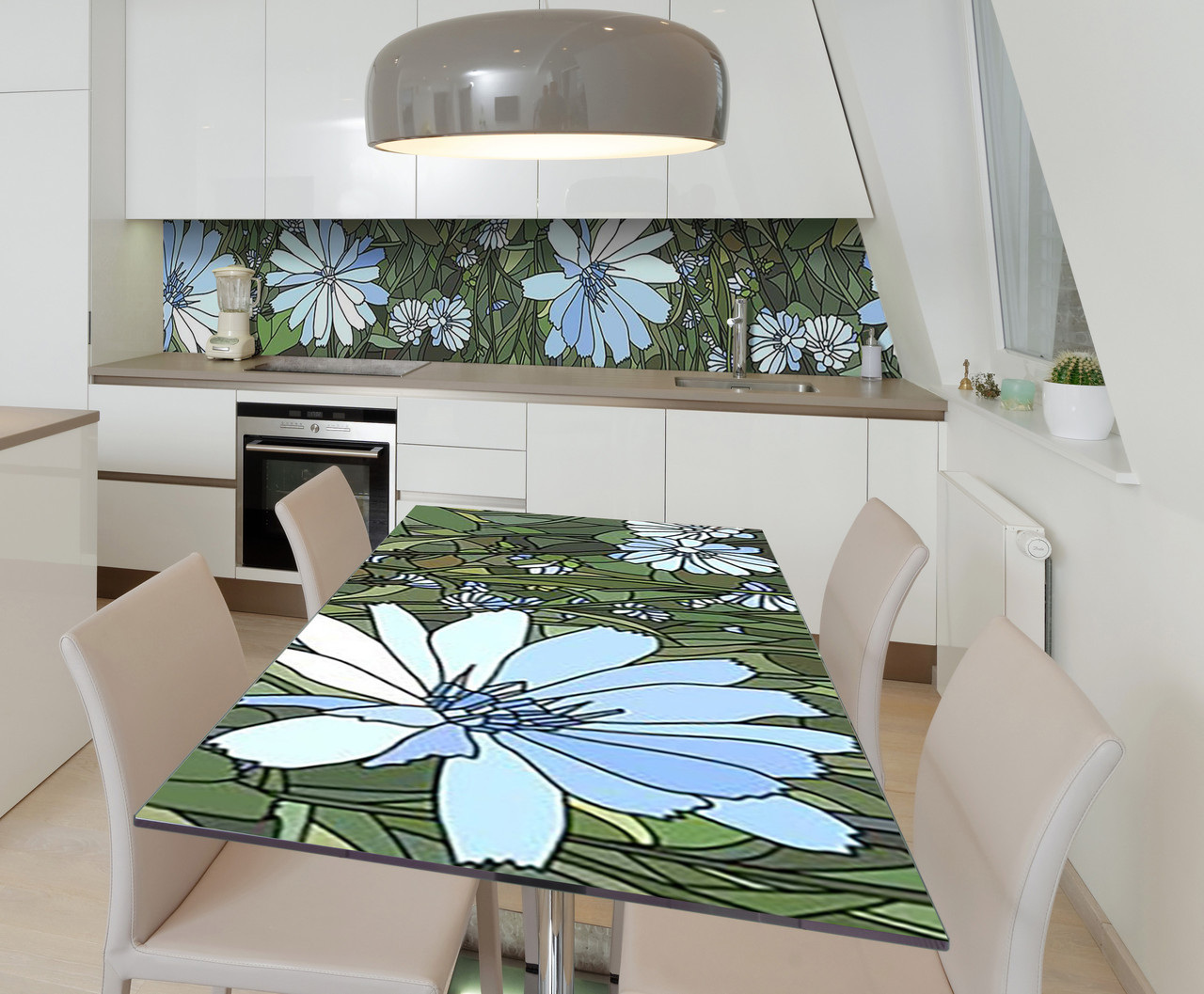 Описание Наклейка виниловая на стол Zatarga "Голубые Цветы витраж" 600х1200 мм