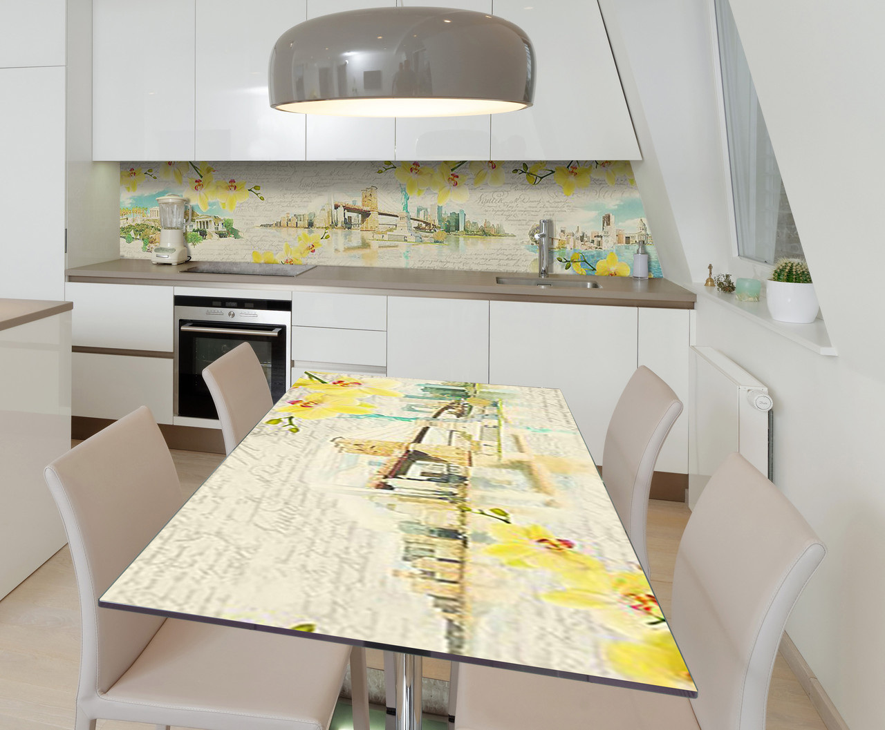 Наклейка виниловая на стол Zatarga "Город и Желтые Орхидеи" 650х1200 мм