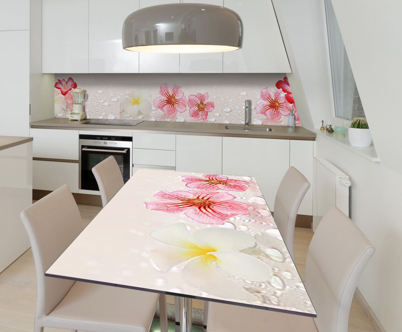 Наклейка виниловая на стол Zatarga "Крупные Цветы и капли Воды" 600х1200 мм Z181744st