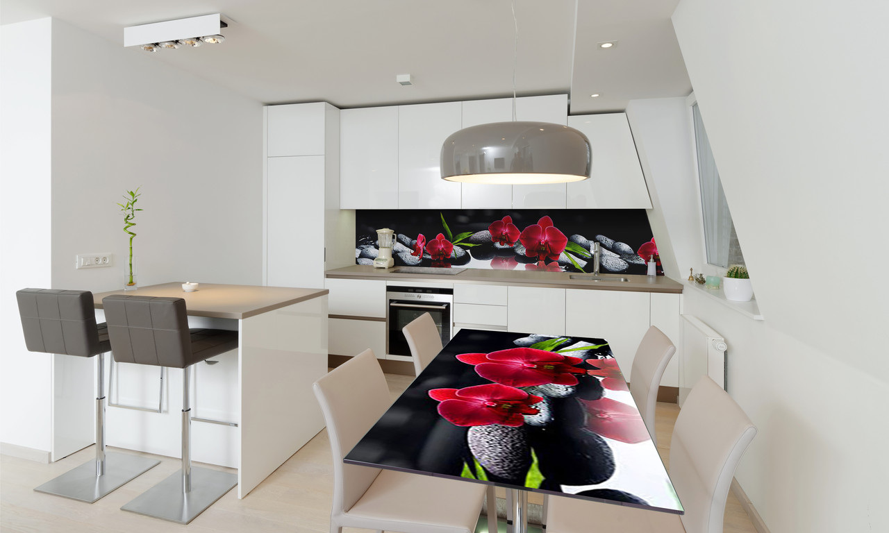 Наклейка виниловая на стол Zatarga «Алая орхидея Черные камни» 600х1200 мм Z180368st