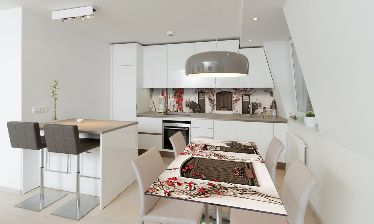 Наклейка вінілова на стіл Zatarga «Червоні Квіти на білих стінах» 650х120 мм;