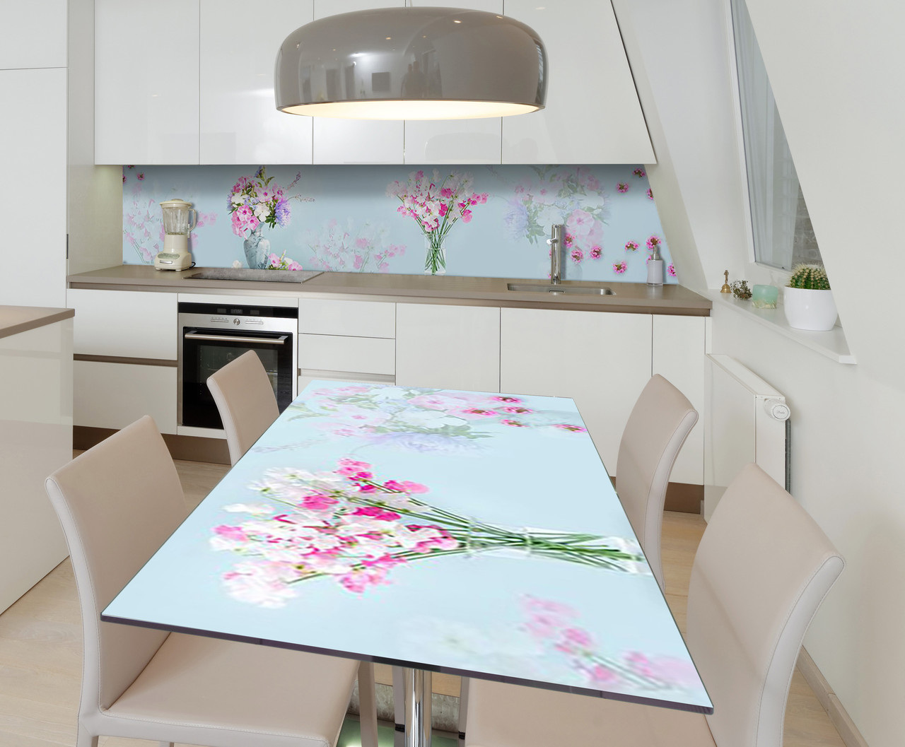 Описание Наклейка 3Д виниловая на стол Zatarga «Букеты тёплых чувств» 650х1200 мм для домов, квартир, столов, кофейн,