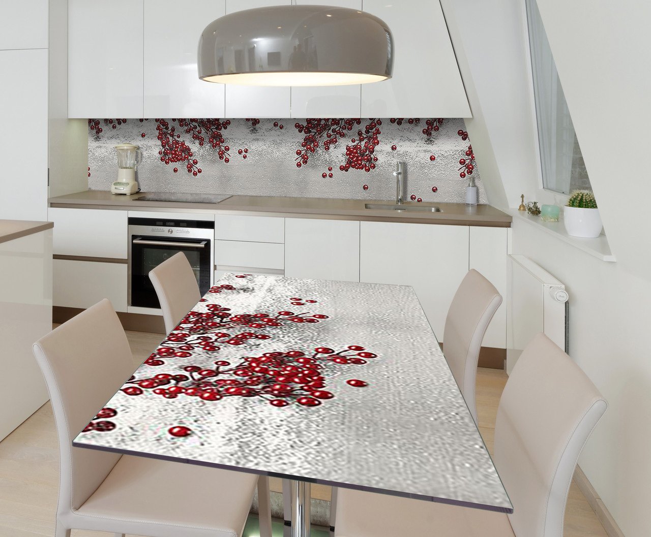 Описание Наклейка 3Д виниловая на стол Zatarga «Рябина на снегу» 650х1200 мм для домов, квартир, столов, кофейн, кафе