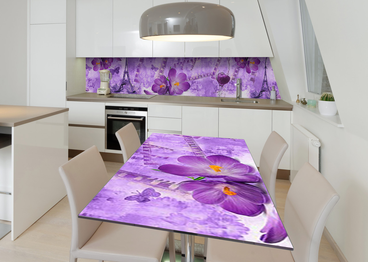Описание Наклейка 3Д виниловая на стол Zatarga «Лиловый Париж» 600х1200 мм для домов, квартир, столов, кофейн, кафе