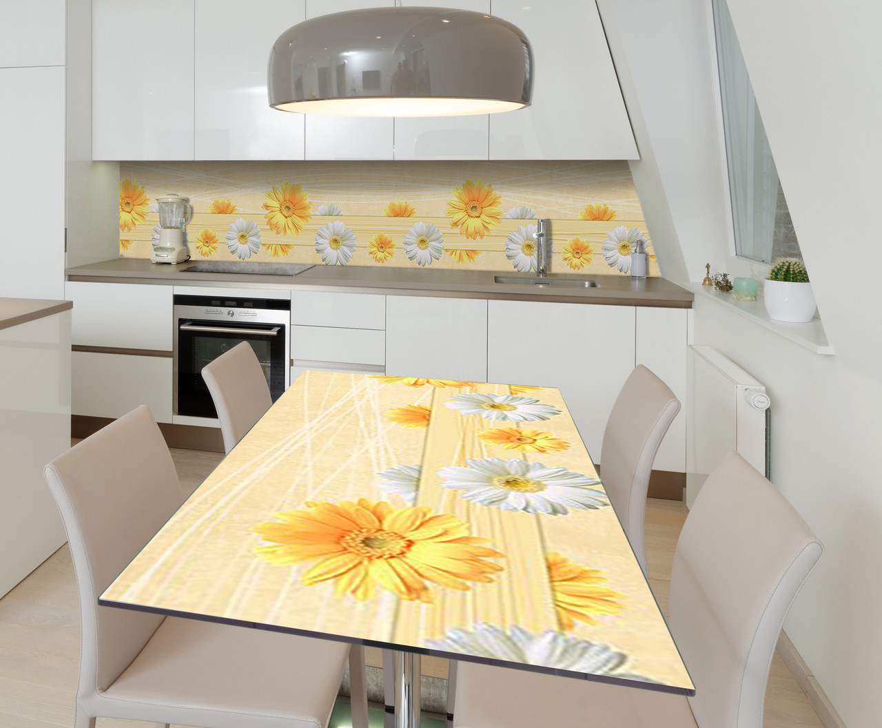 Наклейка 3Д виниловая на стол Zatarga «Цветочный союз» 600х1200 мм для домов, квартир, столов, кофейн, кафе