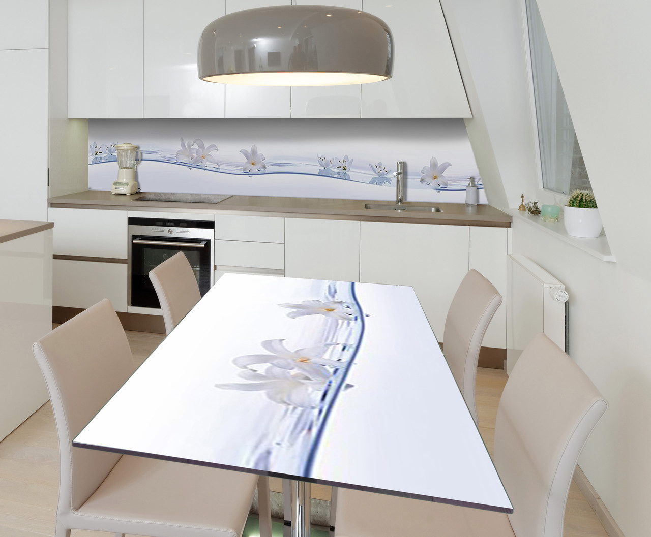 Описание Наклейка 3Д виниловая на стол Zatarga «Плывущие бутоны» 650х1200 мм для домов, квартир, столов, кофейн, кафе