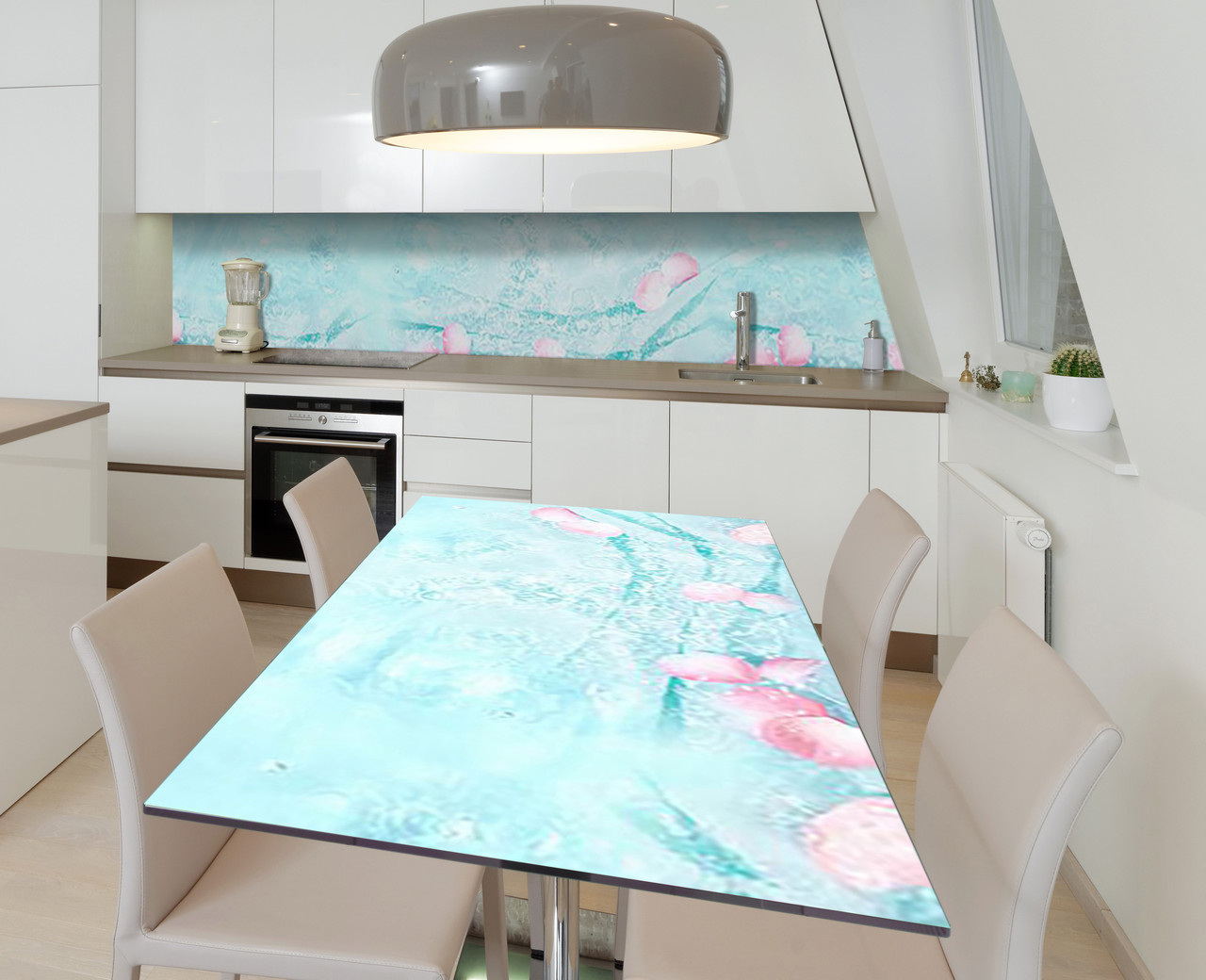 Описание Наклейка 3Д виниловая на стол Zatarga «Лепестки под водой» 600х1200 мм для домов, квартир, столов, кофейн,